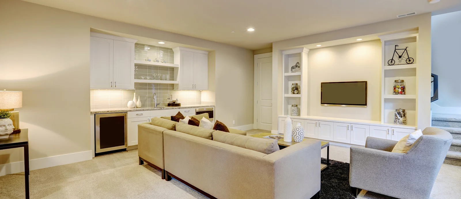 Create a space for family gatherings, movie nights, or game days. Our designs combine comfort, style, and functionality with features like custom cabinetry, built-in shelving, and cozy seating areas.